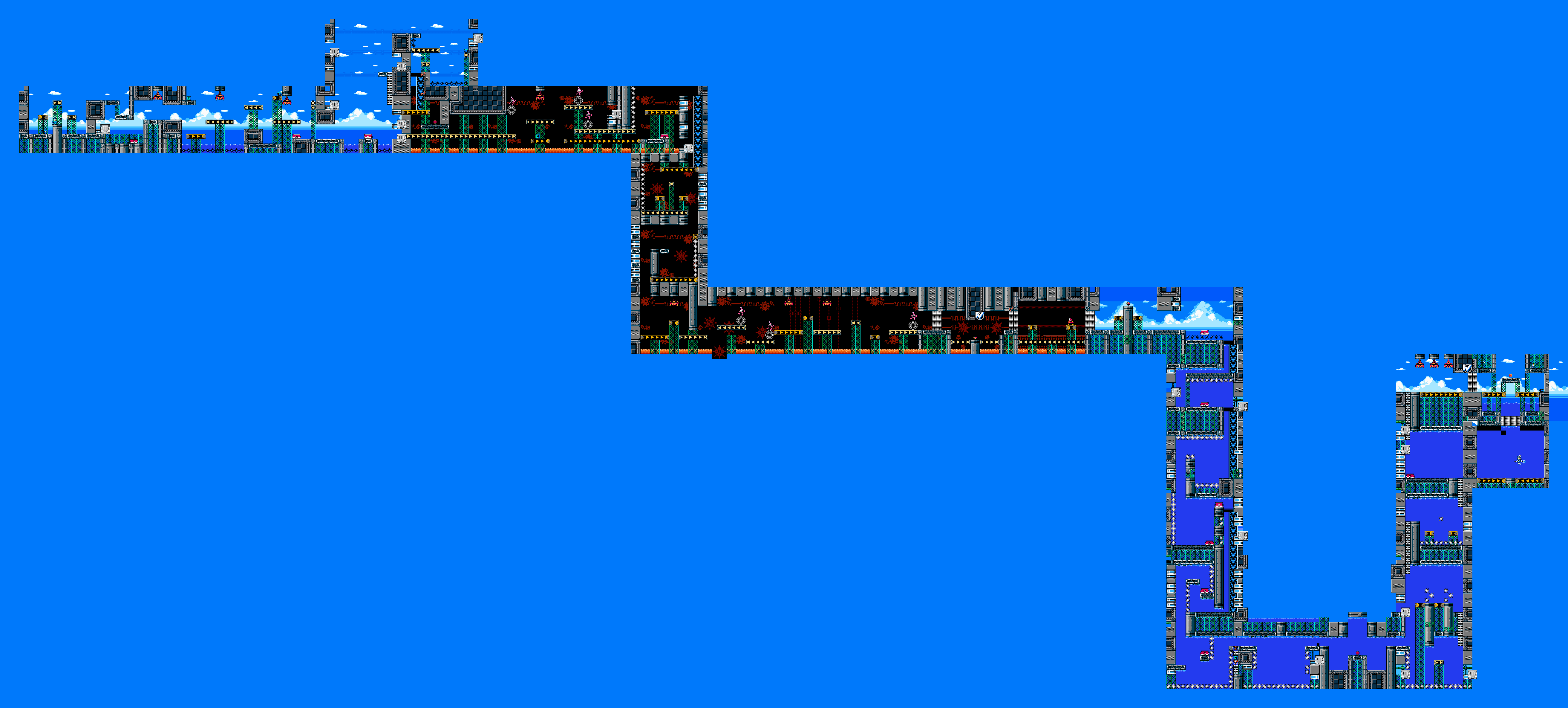 This is my submission for the current contest. I numbered every boss in the game and had a random number generator give me two different bosses. I challenged myself to make a level using only gimmicks and enemies from the levels those bosses came from. As you can probably tell, the rng gave me Splash Woman and Metal Man :) It was a really fun time so I'll probably do it again.