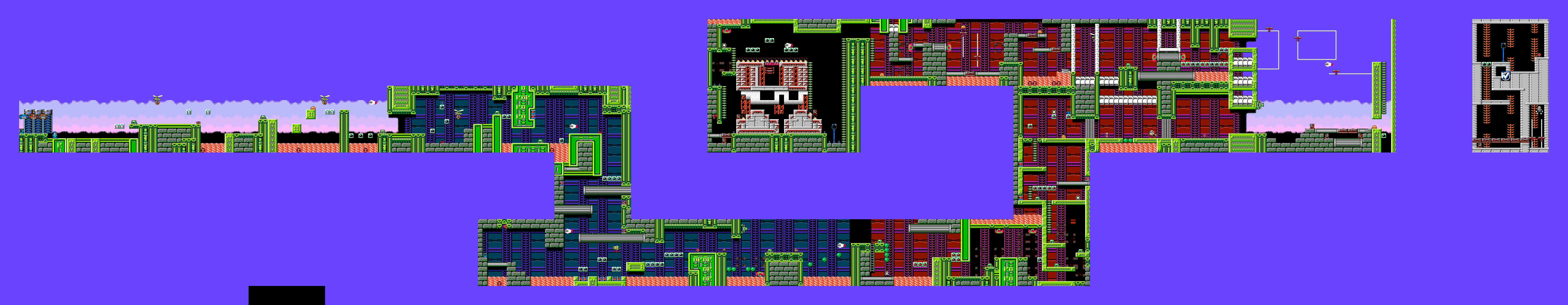 Theme: Traditional fortress stage. The main gimmick is to reuse assets from the level pack, as well as infuse it with elements from previous Adventure Titles. In this case, MMAdv1 bosses Strike and Skull Man make a return.