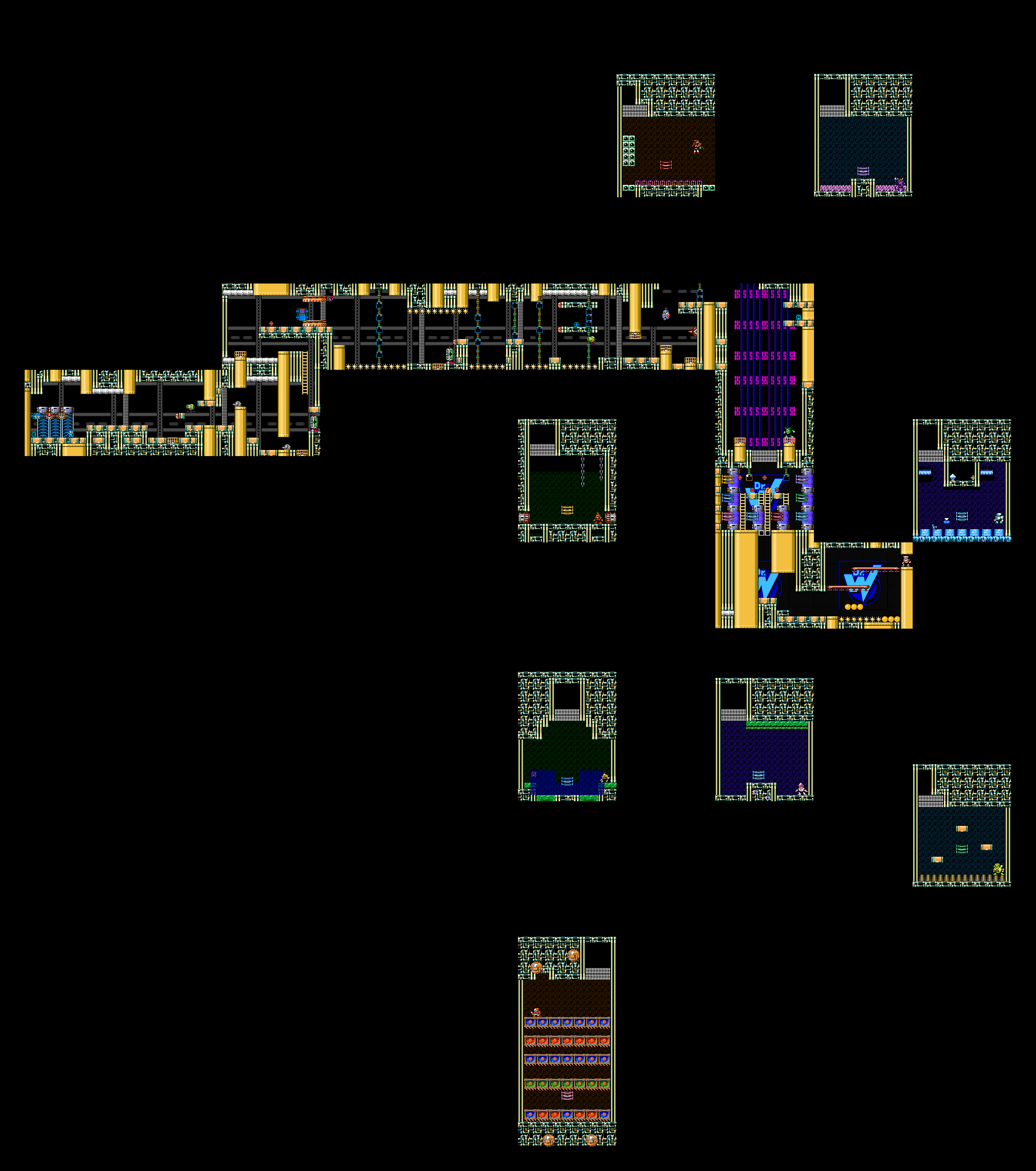 Theme: Your boss rematch stage. The main gimmick is to reuse assets from the level pack, as well as infuse it with elements from previous Adventure Titles. In this case, MMAdv3 bosses Tornado and Top Man make a return.